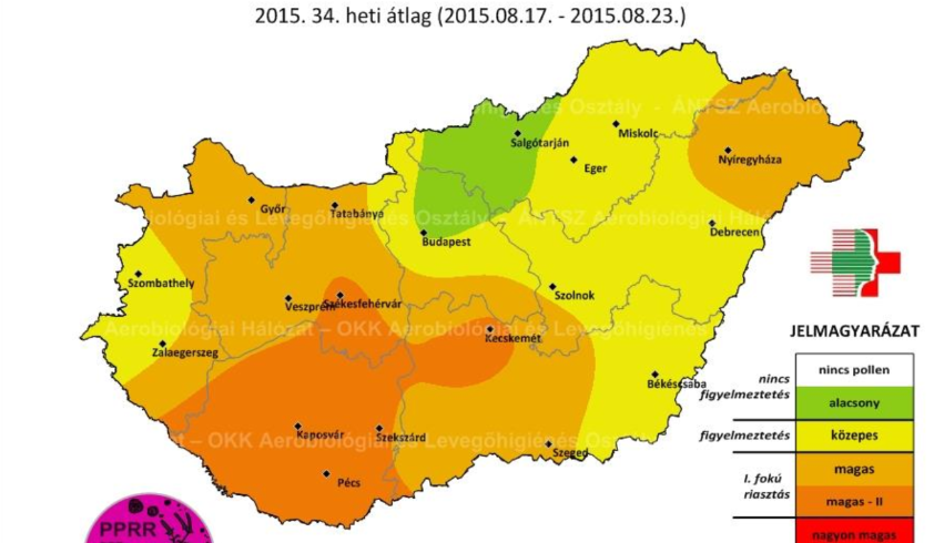Az Országos Közegészségügyi Központ mérései szerint továbbra is a Dunántúlon intenzívebb a parlagfű virágzása. A legmagasabb pollenkoncentrációt a székesfehérvári, a kaposvári, a szekszárdi, a pécsi, továbbá a Duna-Tisza-közén a kecskeméti mérőállomás térségében észlelték (50-99 pollenszem légköbméterenként). Ezen felül még a Balatontól északra és a Nyírségben mértek magasabb értékeket.