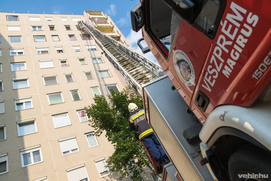 A kép története: megláttuk, hogy gyülekeznek a tűzoltók. Szerencsére nem tűz volt, egy férfit emeltek ki a mentők számára. Hosszú létra, magas panel, jármű és sok ember... és arra is figyelnem kellett, hogy személyiségi jogokat se sértsünk meg. Megoldva: helyes objektív, megfelelő szög és persze a megfelelő pillanat.