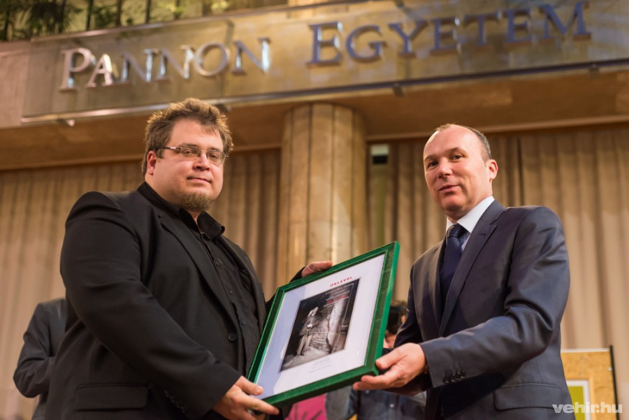 Igen, pontosan ennyi időm volt arra, hogy észrevegyem: ha leguggolok, rajta lesz a Pannon Egyetem felirat a képen. Amennyire láttam, ez csak nekem jutott eszembe, illetve a szereplőknek, akik pont rám pillantottak, nem pedig a többi fotós egyikére.