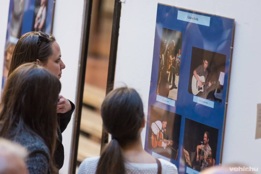 És ha már megvannak a jó képek, akkor mutassuk meg másoknak is. Sőt! Fotózzuk le, ahogy mások nézik. Ez egy klasszikus kiállítás megnyitón készült kép, annyi különbséggel, hogy az én képeim is ki vannak téve. Talán majd ezt a képet is kiállítjuk valahova, és halmozódhat tovább.