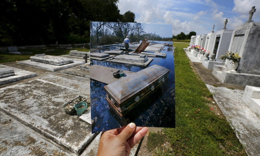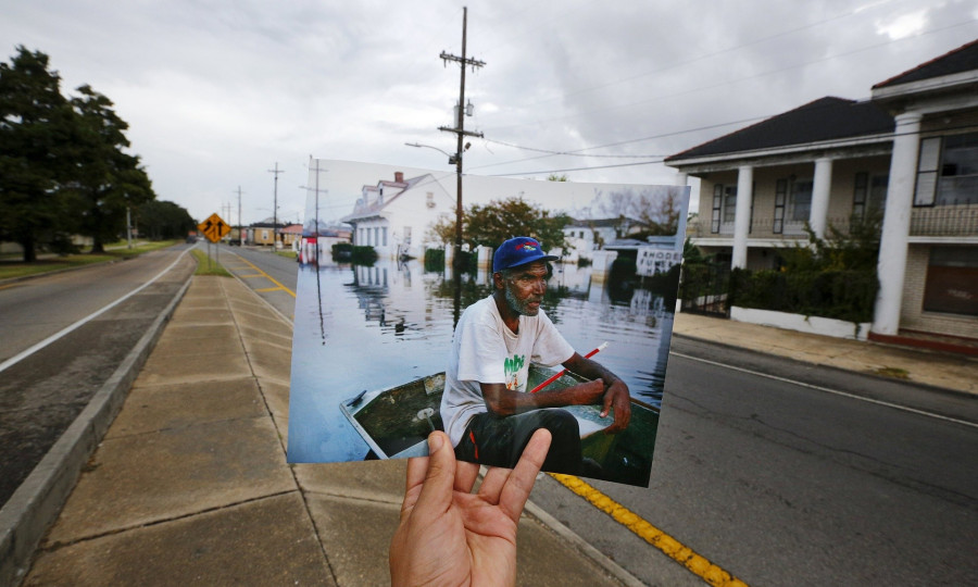Carlos Barria végigjárta a 2005-ös katasztrófa néhány fotójának helyszíneit, és az akkor készült képeket a mai látvánnyal ötvözve mutatja meg a kontrasztot.
