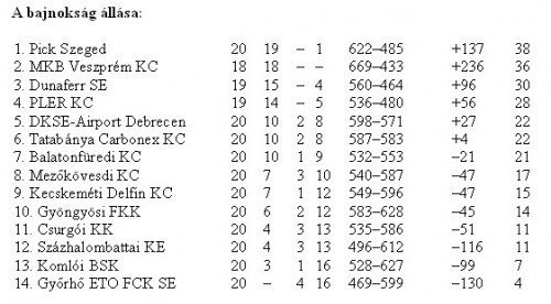 Budapest Bank férfi kézilabdaliga, 20. forduló: