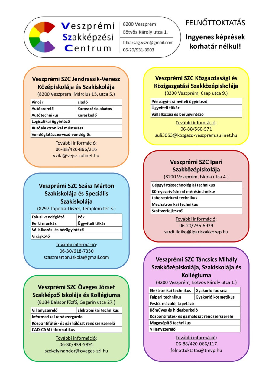 INGYENES KÉPZÉSEK A VESZPRÉMI SZAKKÉPZÉSI CENTRUMBAN!