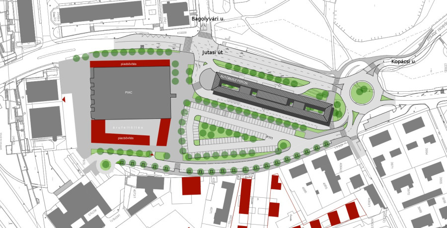 A piac környezetében lévő rendezetlen parkolási helyzetet ugyan nem oldja meg a terv, azonban a jelenlegi buszpályaudvar helyett kialakítandó Bagolyvár átszállópont mellett felszabaduló területeket parkolási célra lehetne használni. A cél, hogy a jelenlegi buszpályaudvar közlekedési funkcióját a lehető legnagyobb mértékben zsugorítsák, az ott lévő közlekedési tereket csökkentsék.