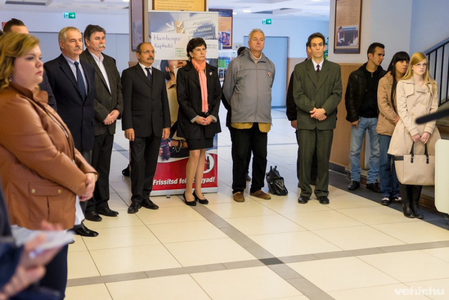 Ezután a B épület előtt égő, az 1956-os szabadságharc emlékét őrző örökmécsest is koszorúkkal díszítette az egyetem vezetősége. Az ünnepség a C épületben zárult, amely a Szabad Veszprém Rádió sugárzásának helyszíne volt. Vincze Péter, HÖK elnök ünnepi beszédében arról beszélt, hogy október 23-a a törvény erejénél fogva nemzeti ünnep, azonban fontos, hogy egy nemzeti ünnepet sosem lehet a törvény által elrendelni. Mert nemzeti ünnep csak az lehet, amelyet a nemzet a szívébe fogad, az emberek átszellemülnek az emlékezés pillanatában és tudják, hogy mit is köszönhet Magyarország azoknak az egyszerű embereknek, névtelen hősöknek, akik az életüket áldozták a jövőért. Értünk.