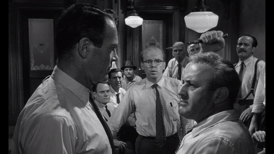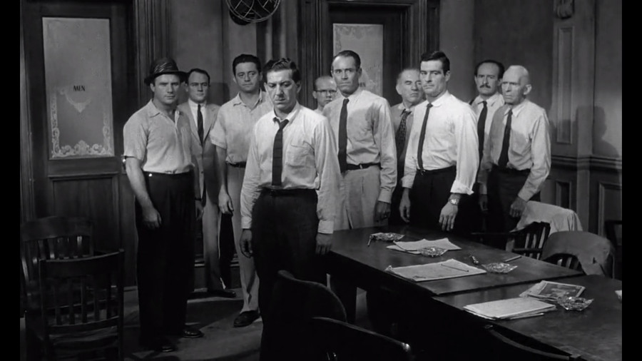 Az 1957-ben bemutatott Tizenkét dühös ember az esküdtek munkáját mutatja be, akiknek egy gyilkossági ügyben kell egyhangú ítéletet hozniuk.