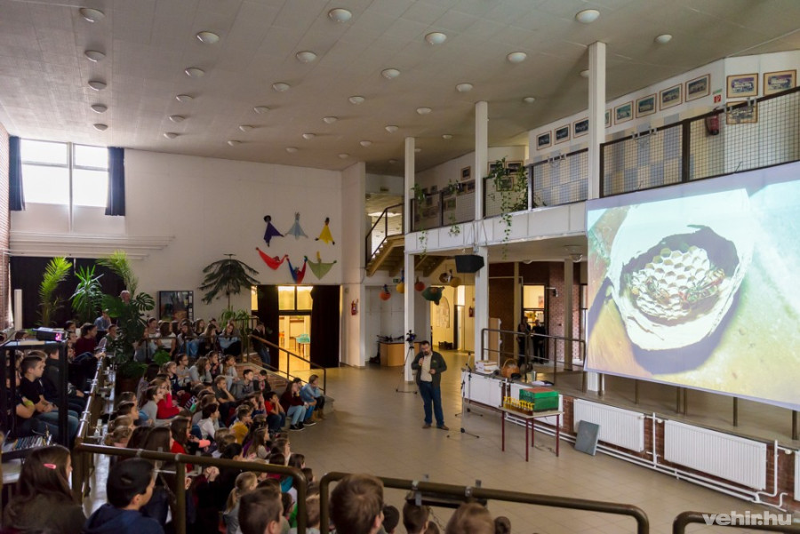 Simon Péter előadásából a Rózsa iskola diákjai megismerhették a méhkaptárok hierarchiáját, a méhek túlélési stratégiáit.