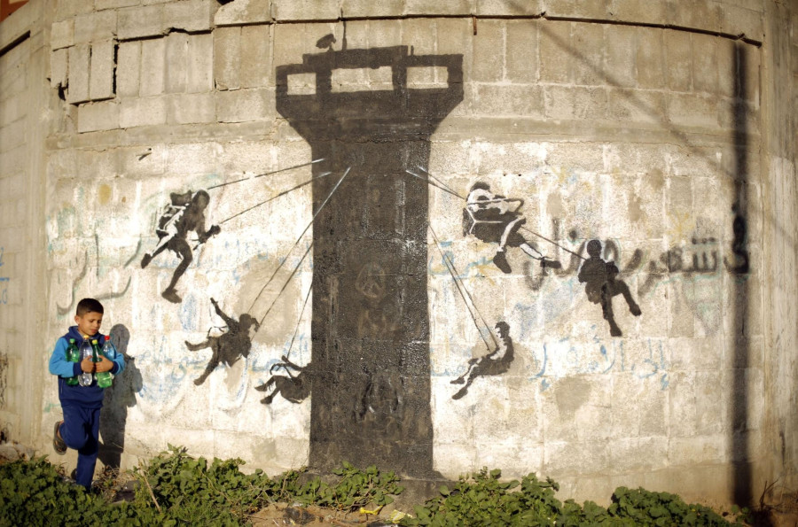 Körhinta Banksy módra Gázában; Fotó: Mohammed Abed