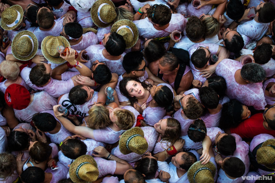 Mulatozó tömeg a San Fermin-i bikafuttatás első napján Spanyolországban Fotó: David Ramos