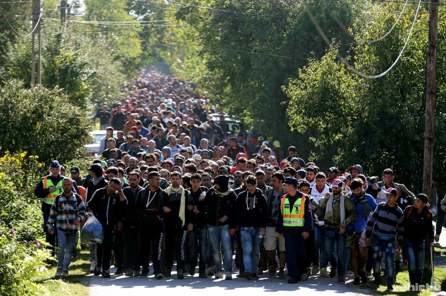 Christopher Furlong a Magyarországról Ausztirába gyalogoló menekülteket kapta lencsvégre szeptemberben