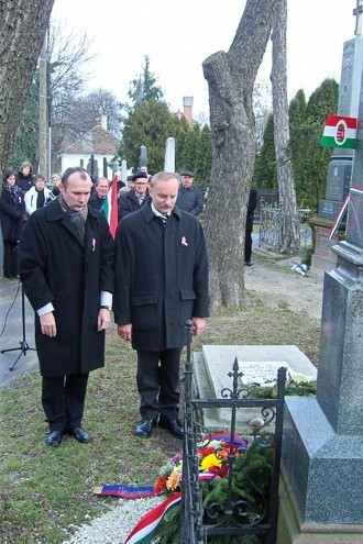 Ezután az emlékezők elhelyezték koszorúikat az emlékműnél, majd Molnár Jánosné helytörténet-kutató vezetésével járták körbe az alsóvárosi temetőben nyugvó 1848-49-es honvédek sírjait.