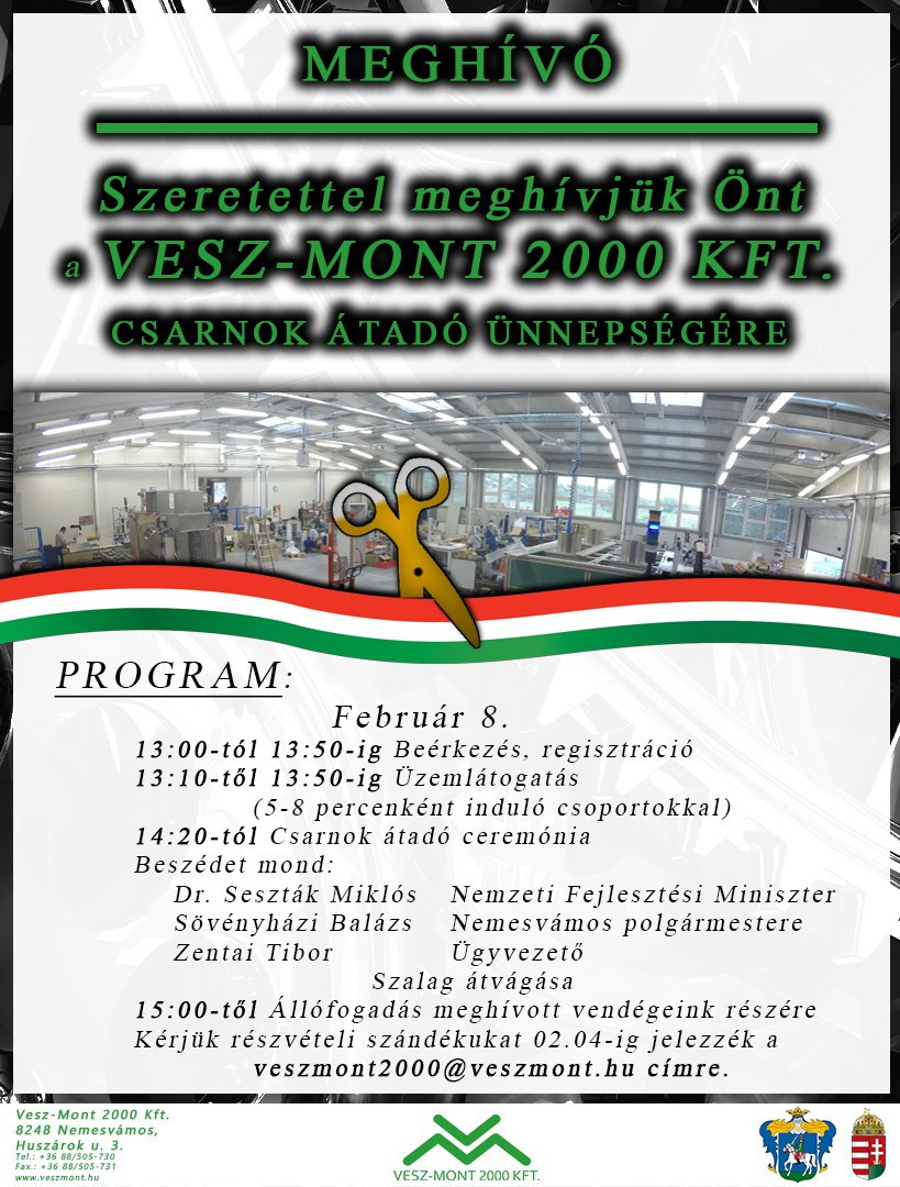 A Vesz – Mont' 2000 Kft. 1999 óta töretlenül fejlődik a szereléstechnika, az ipari automatizálás, a speciális gépgyártás, robottechnika, az anyagmozgató rendszerek tervezése, gyártása és beüzemelése területén. 2007-ben egy jelentős fejlődés következett be a cégéletében, Nemesvámoson zöldmezős beruházás keretében felépítették új telephelyüket, ami egy 140 m2-es irodaépületből, és 200 m2-es könnyűszerkezetes csarnoképületből áll. Ezzel párhuzamosan elkezdték kiépíteni, növelni a mérnök iroda tevékenységet, fejleszteni mérnöki csapatukat, mely jelenleg több mint 40 fő gépész- és villamosmérnökből áll.