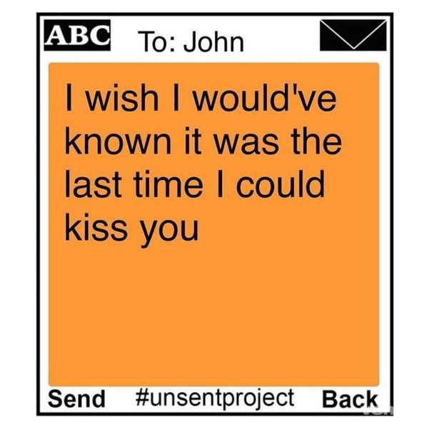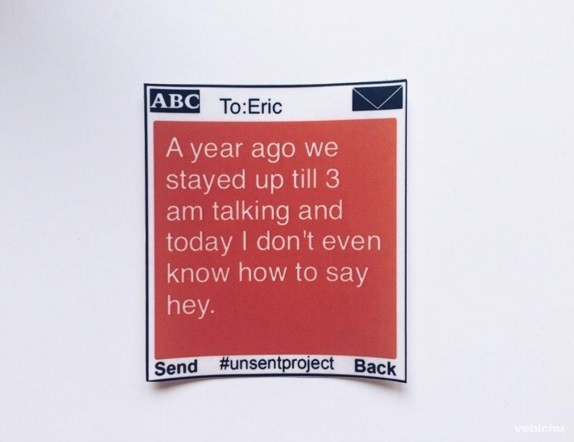 Az unsent project (elküldetlen projekt) mindenkinek megadja a lehetőséget, hogy névtelenül üzenjen exének. A legjobbakat a lány weboldalán és instagram fiókján találjuk, de rengeteget ki is nyomtat belőlük.