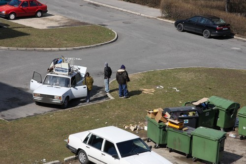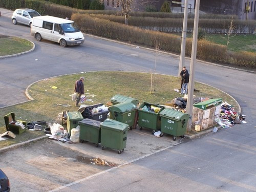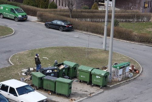 Képeink a Damjanich utcában készültek. Az öregecske Lada szállítja el a hasznosat, majd miután megtelik, egy "vigyázó" a kupac mellett marad, nehogy azt a konkurencia megdézsmálja.