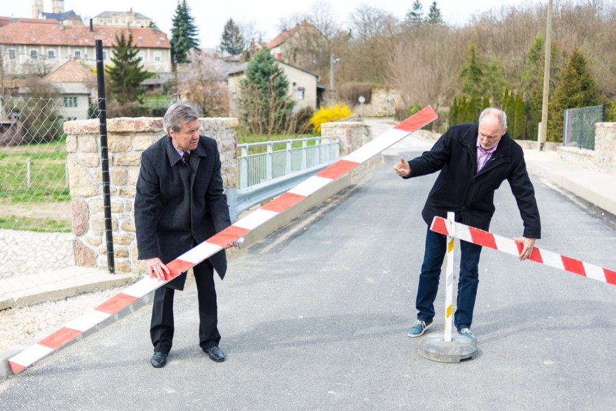 A sajtótájékoztató végén az alpolgármester Hellebrandt Ferenccel, a VeszprémBer Zrt. vezérigazgatójával közösen hivatalosan is átadta a hidat.