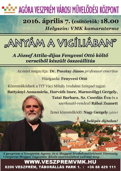 Fenyvesi Ottó József Attila-díjas költő versei április 7-én, csütörtökön 18 órától az Agórában.