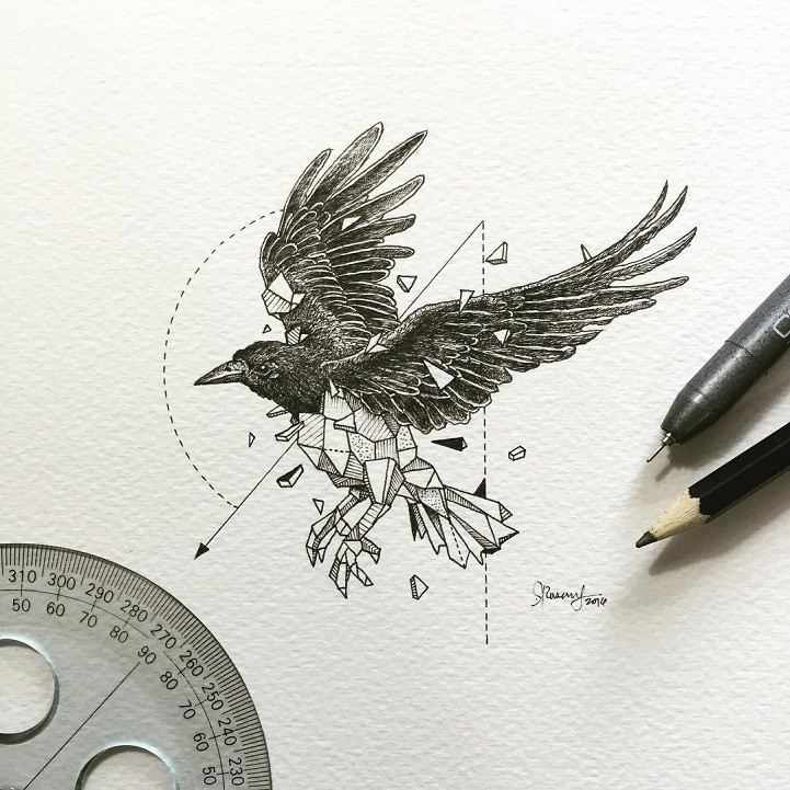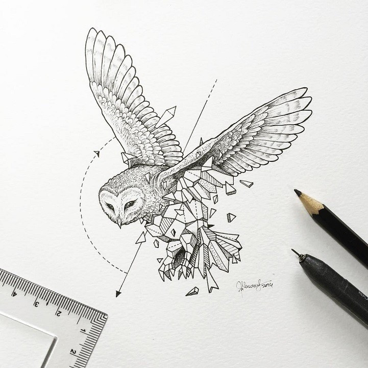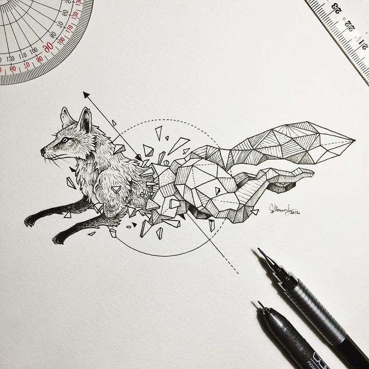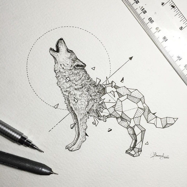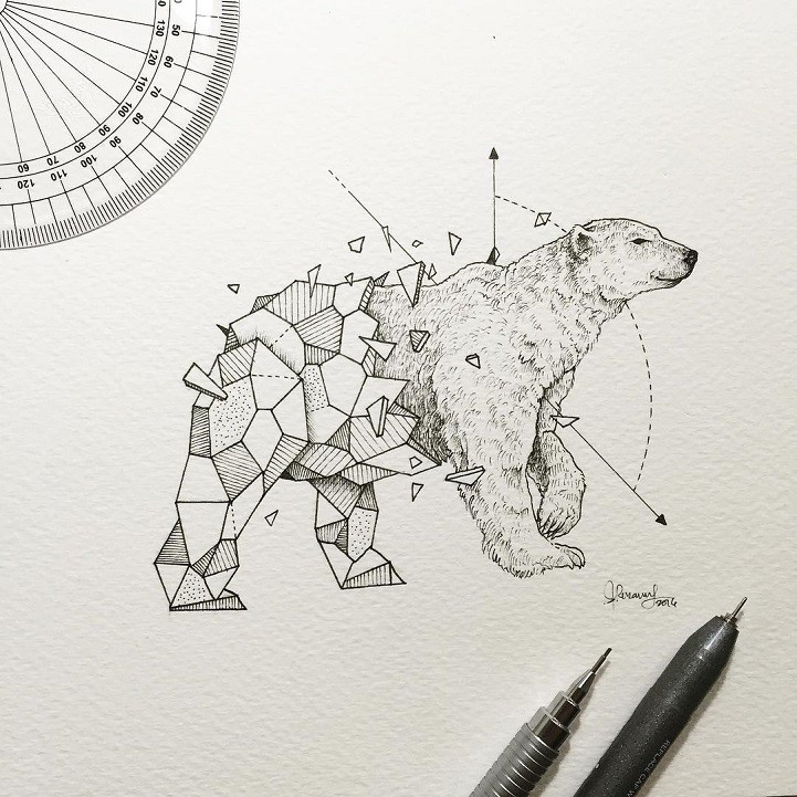 A fiatal filippínói művész szeszélyes, részletgazdag és meglehetősen absztrakt rajzaival került be a köztudatba, amelyek valósággal kirobbannak a vázlatfüzetből. Legújabb projektjét a természet ihlette: vadon élő állatokat jelenít meg, ahogy kitörnek a geometriai formák börtönéből.