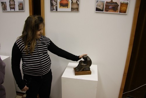 A tárlatvezetéssel is felérő megnyitó után arra is lehetőség nyílott, hogy a meglehetősen ritka művészi elképzelés alapján készült alkotásokat ki-ki meg is érinthesse, simogathassa. A gömbbe visszatérő, végtelenségig leegyszerűsített figurák valójában nemcsak a szemet vonzzák, de a kezet is. Erről maga a művész is beszélt egy korábbi interjújában. Azt tapasztalta ugyanis, hogy az amúgy „jól nevelt” közönség szívesen nyúl a kiállított tárgyakhoz.