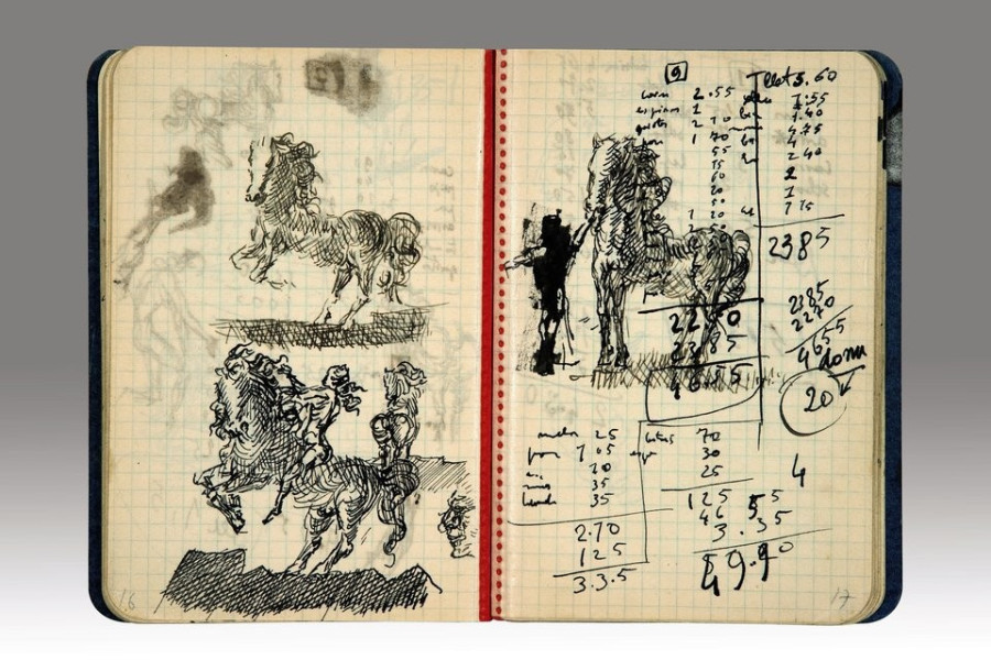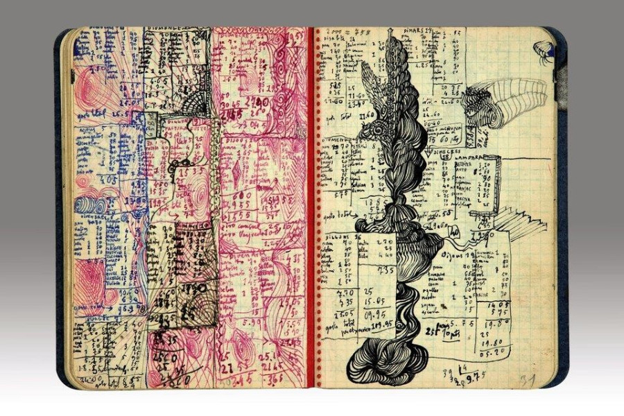 Salvador Dalí jegyzetfüzetébe nemcsak spontán gondolatait írta fel, hanem absztrakt vagy épp erotikus rajzokat is firkált a négyzetrácsos füzetbe. A dokumentumot lapozgatva azt is megtudhatjuk a neves festőről, hogy már-már kényszeresen számon tartotta a kiadásait, az utolsó pezóig mindent feljegyzett, a végletesen racionális számsorok pedig bizarr elegyet alkotnak az őket körülölelő vagy félig-meddig elfedő rajzokkal.