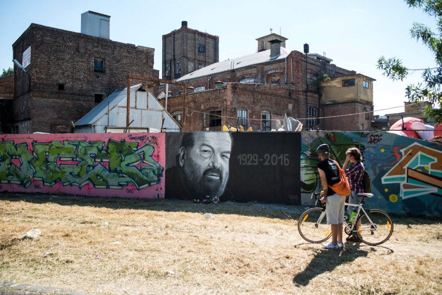 A Taker néven festő graffitis Bud Spencer halálának hírére megfestette az olasz színész-sportoló portréját. Respect.