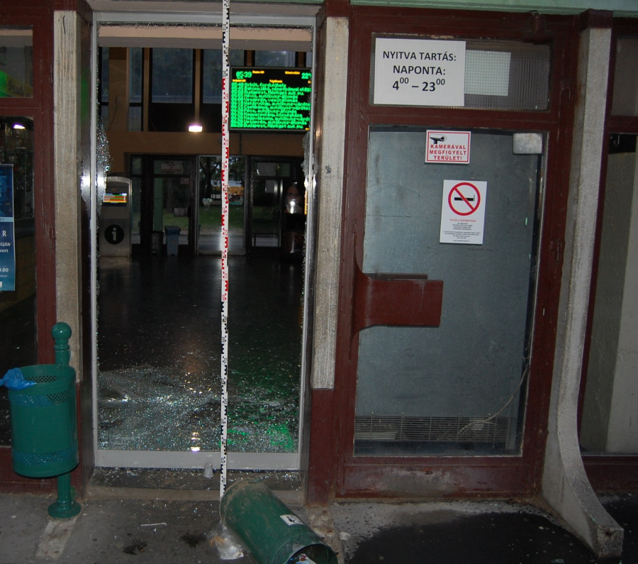 A 21 éves halimbai lakos szombat hajnalban az ajkai autóbuszpályaudvar váróterme fotocellás ajtajának egy fém hulladékgyűjtőt dobott, majd a megrepedt üveget lábbal berúgta.