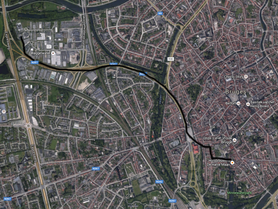 Most azonban Bruges még a történelmi város nevezetességei köré épített filmnél is emlékezetesebb reklámot kapott. Történt ugyanis, hogy az egyik helyi sörfőzde, a De Halve Maan tulajdonosa, a lokálpatrióta Xavier Vanneste megelégelte, hogy a folyékony kenyeret a főzdéből a palackozó üzembe szállító teherautók koptatják a középkori macskaköves utcákat és szennyezik a levegőt, ezért elhatározta, hogy