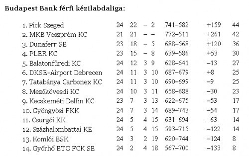 Budapest Bank férfi kézilabdaliga, 24. forduló: