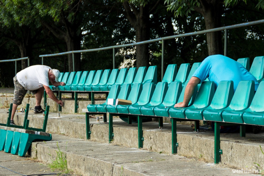 A felújítási munkálatok részeként ma új székekkel bővült az egykoron élvonalbeli meccseknek is helyt adó aréna.
