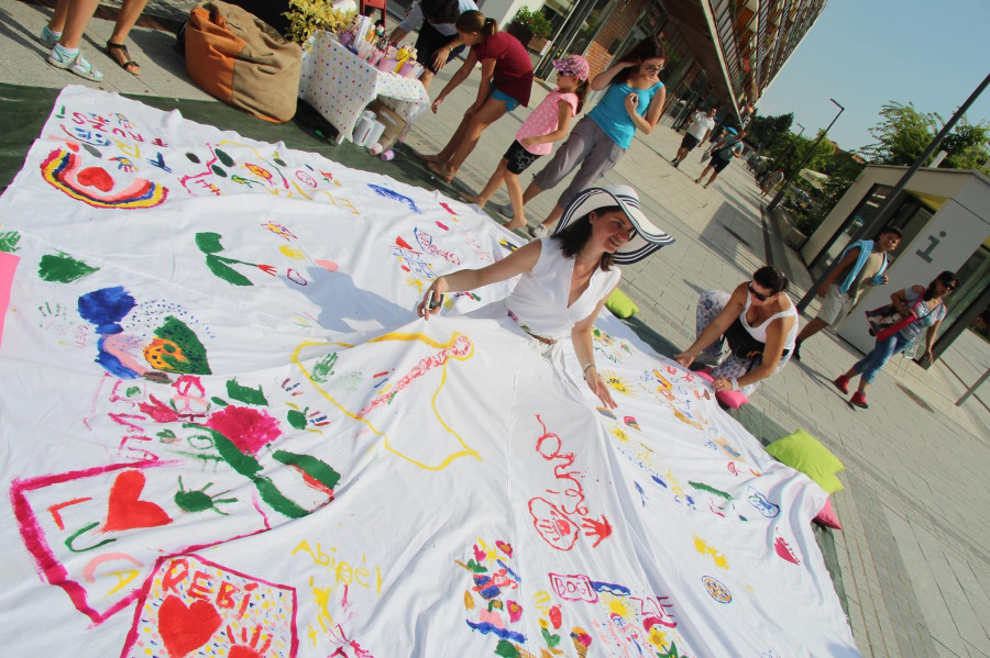 A Tourinform Iroda támogatásával, az Infopont szomszédságában, a Három grácia szobra előtt letelepedve, egy saját maga által varrt, absztrakt szülinapi tortát formázó, négy méter átmérőjű szoknyában várta a mostani és a leendő tanodásokat. A gyerekek a szoknya szélére ülve, mintegy vászonként használva a hófehér textilt, szabadon kifesthették azt, majd egy sétára indultak a Kossuth utcán Franciskával és időközben tarka-barka színt öltött, hosszú uszályos szoknyájával, közös fotókat készítettek és táncoltak.