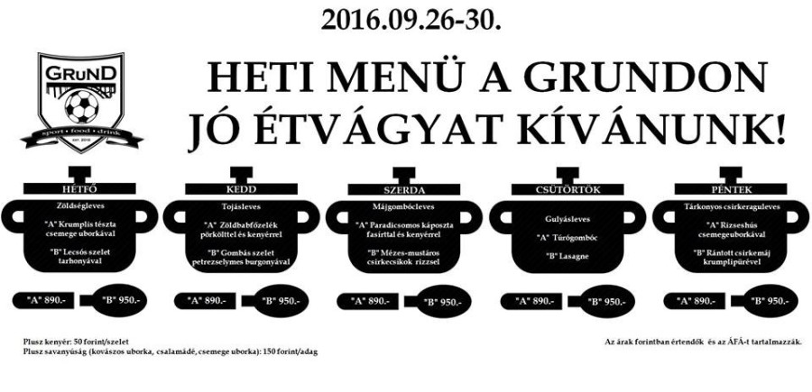 A fogyasztó közönség igényeinek is eleget téve, hétfőtől új szolgáltatással, napi menüvel bővül a GRUND kínálata. Szintén szeptember 26-i kezdettel elindul a QuizNight sorozat is, ahol játékos szellemi vetélkedő keretében mérhetik össze tudásukat baráti társaságok, csapatok.