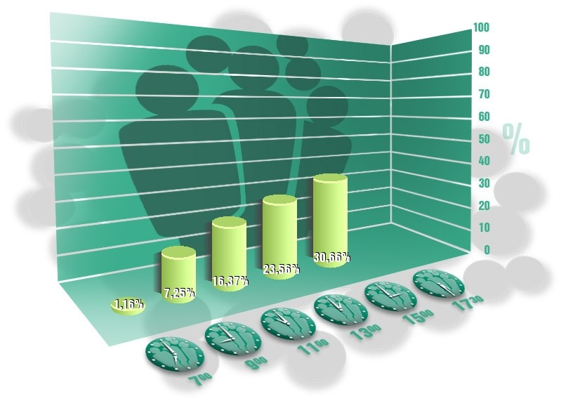 A népszavazás félidején túllépve a választópolgárok 23,56 %-a adta le szavazatát. A 2008-as népszavazáskor az egyórás adat 26,92%, 2004-ben 18,57% volt.