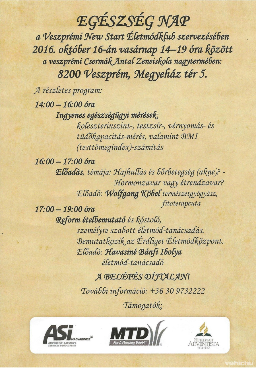 Ingyenes egészségügyi mérések, előadások. 2016. október 16. | Csermák Antal Zeneiskola