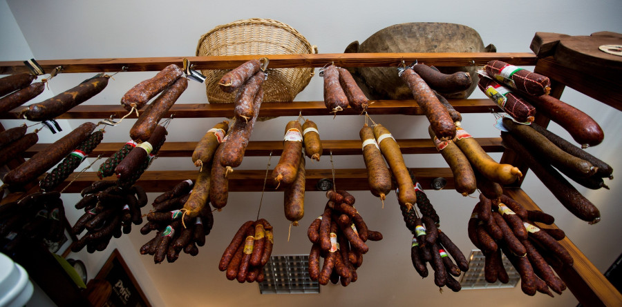 Az érzékszerveink arra valók, hogy használjuk őket. Az üzletben kötelező a kóstolás. Erre senkit nem kell kétszer kérni! A húsok látványa, az ízek és az illatok mind megérnek egy misét. Előfordul, hogy a vendégek fél órát vagy egy órát is eltöltenek itt: kóstolnak, kísérleteznek, beszélgetnek, nézelődnek. Van is mit: a falat a Kocsis család fotói borítják: dédszülők, nagyszülők, rokonok. Minden kép egy történetet mesél. A kedvencünkön Kocsis József látható, Bálint és Jenő dédapja. Két elsőszülött gyermeke az ölében, háttérben egy szürke marha. A képen a három tőkelegény is fontos szereplők. Az ő feladatuk volt az értékesítés, amely komoly rangot jelentett.