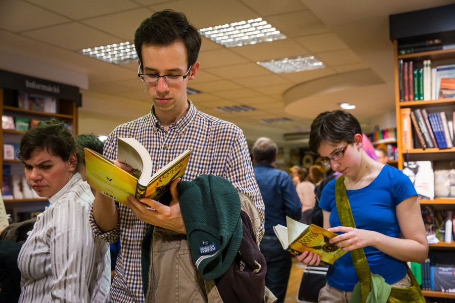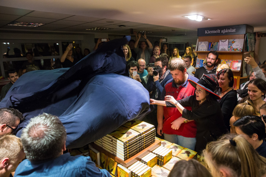 A budapesti Rákóczi úti Libri Könyvpalotában megrendezett esten mégis annyian tolongtak, hogy voltak, akik már be sem fértek. A rajongók közül rengetegen érkeztek jelmezben, a résztvevőket pedig az éjféli leleplezésig kvízekkel, a filmek forgatási helyszínein felvett werkfilmekkel szórakoztatták, de volt felolvasás is a könyvből, valamint Tóth Tamás Boldizsár, a könyvek és a filmek fordítója mesélt a kulisszatitkokról.