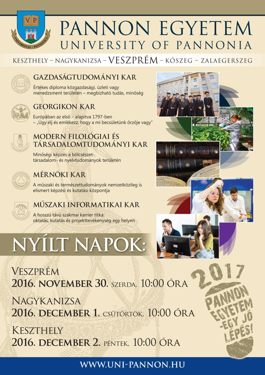 2016. november 30. (szerda) 10.00 óra - 8200 Veszprém, Egyetem utca 10. - A nyílt napon jelen lesz számos, a duális képzésben résztvevő vállalati partnerünk is!