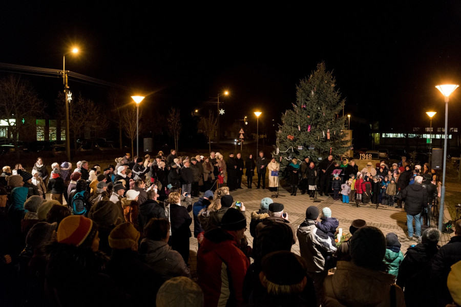 Az ünnepségen részt vett Medveczky Miklós plébános is, aki elmondta, egy hívő ember számára a legnagyobb ajándék Jézus, akinek a születése lámpásként hatott a sötét éjszakában, majd Ady Endre Kiskarácsonyi ének című versével kívánt áldott karácsonyt.
