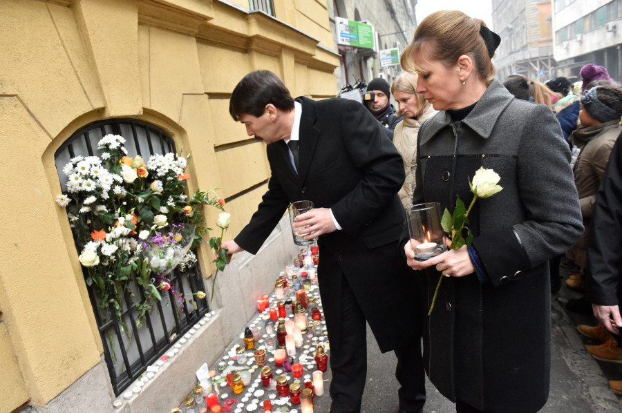 A köztársasági elnök virágot és mécsest helyetett el a budapesti iskola bejáratánál.