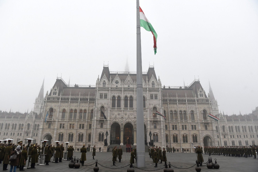 Felvonták, majd félárbócra eresztették a nemzeti lobogót a veronai buszbaleset áldozataiért elrendelt nemzeti gyásznapon, hétfő reggel az Országház előtt. A budapesti Kossuth Lajos téren tartott megemlékezésen ott volt Áder János államfő, Kövér László, az Országgyűlés elnöke és Orbán Viktor miniszterelnök is.