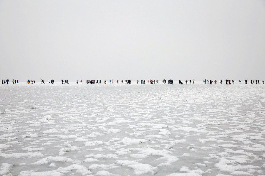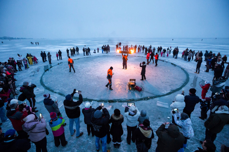 A nyári főszezont is túlszárnyaló tömeg lepte el az északi parti Badacsony és a déli parti Fonyód strandjait, az átcsúszás 5,2 kilométerre lévő két végpontját. Az átkelőkből, akik közül sokan különféle téli sporteszközökkel tették meg a távot, szinte élőlánc alakult ki a két strand között.