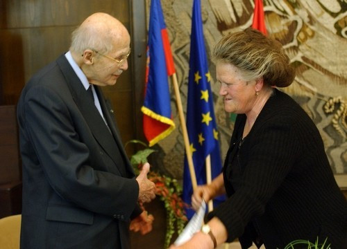 Az utolsó Habsburg trónörökös veszprémi látogatása a városházán fejeződött be. Népes érdeklődőtábor előtt Habsburg Ottót a a Páneurópa mozgalom veszprémi egyesületének ex-elnöke, Gy. Lovassy Klára köszöntötte.
