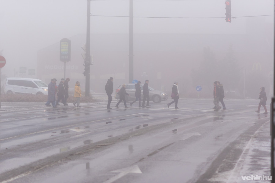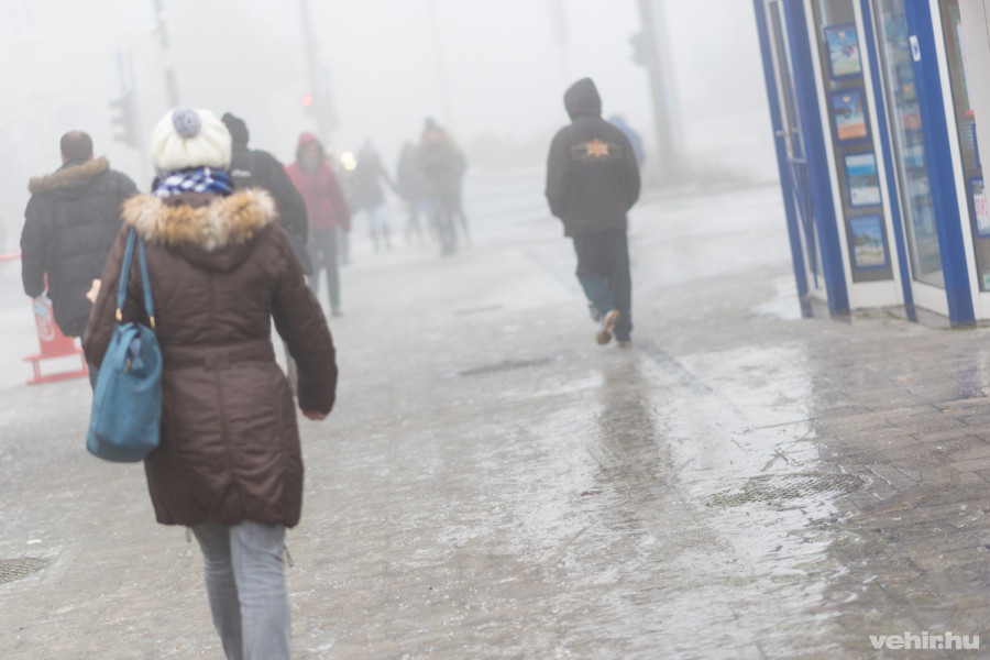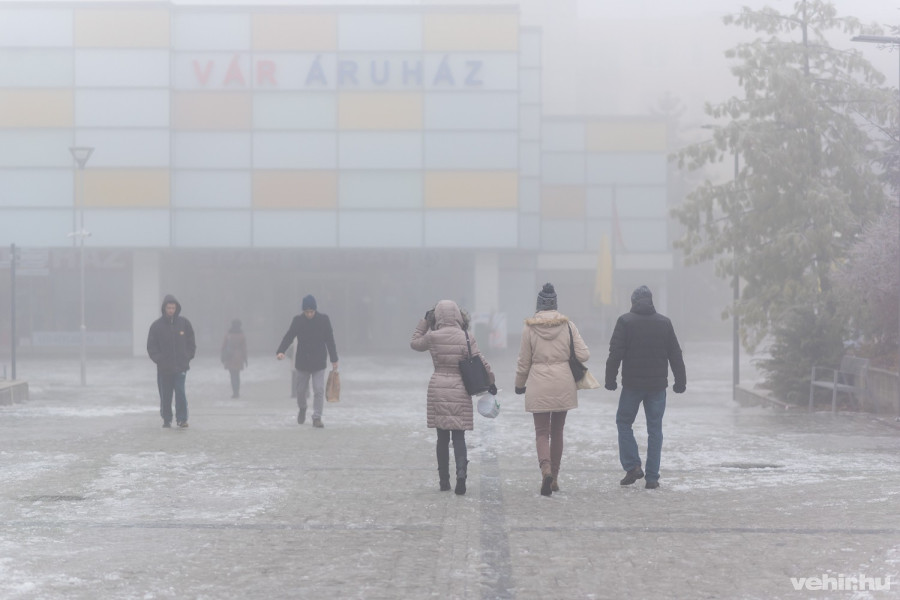 A Budapest út autóval elég jól járható, viszont a szmog rontja a látási viszonyokat. A mellékutcákon gyalogosan csak totyogni lehet, mindent vékony tükörjég borít.