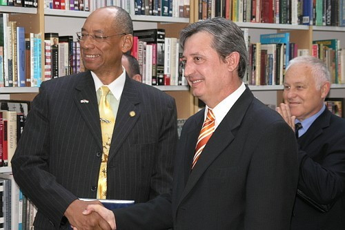 A különböző témájú, angol nyelvű könyveket a megyei könyvtár részlegének az „Amerikai hét” alkalmából adta át. Az eseményt üdvözölte Jeffrey D. Levine, megbízott amerikai nagykövet és Lasztovicza Jenő megyei közgyűlési elnök. London Steverson a nagykövettől megkapta a kultúra diplomatája elismerő oklevelet.