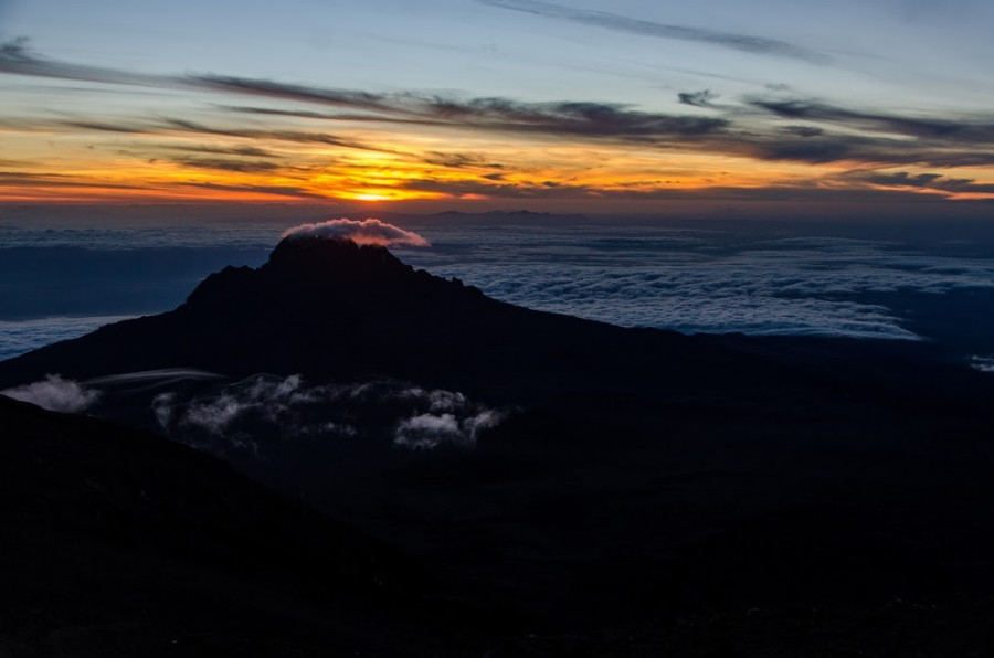 „A csúcstámadás mindig éjfélkor indul, a 4620 méteren fekvő Barafu táborból, innen nagyjából 6 és fél óra alatt érni fel 5745 méterre, a Stella Pointra, ahol megvárjuk a napfelkeltét. Már az is egészen elképesztő, ahogy mászás közben, 1000 méterenként teljesen megváltozik a táj, de az még inkább felemelő érzés volt, ahogy a felhők felett megláttuk feljönni a napot. Innentől kezdve aztán én is erőre kaptam – talán a koffeintabletta is segített –, az utolsó lankás emelkedőn pedig már háromnegyed óra alatt elértük a csúcsot.”