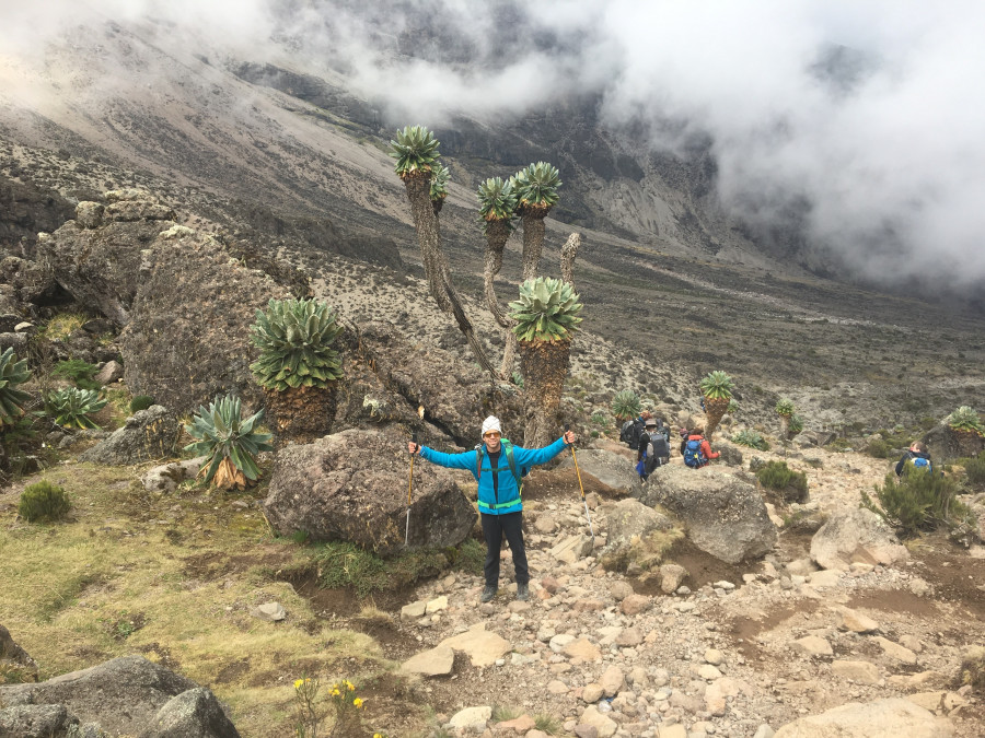 „Az 1840 méteren található Machame-kapuhoz még busszal utaztunk. Innen indul a túra, és minden nap nagyjából 1000 métert mentünk felfelé, azaz kb. 10-15 km-t és 5-8 órát gyalogoltunk. Ez az útvonal végig kiépített, nem is igényel mászó technikát, jószerivel fel lehet sétálni. Jószerivel, hiába van ugyanis egy akklimatizációs szakasz, amikor először felmegyünk 4620 méterre, majd visszatérünk 3590-re, a Láva-torony táborhelyre, az utolsó szakaszon már nagyon rosszul éreztem magam. Bár ahány ezer méteren vagy, annyi liter vizet mindig meg kell innod, csapvíz hiányában, folyton csak teát kortyolva ez nem is olyan egyszerű. 4000 méter fölött pedig az oxigén is csak feleannyi, amihez az egyik táborban még orkán erejű szél is társult” – emlékezik vissza István. Nem csoda, ha úgy érezte, jottányi ereje sincsen és feladja. Aztán mégsem így lett.