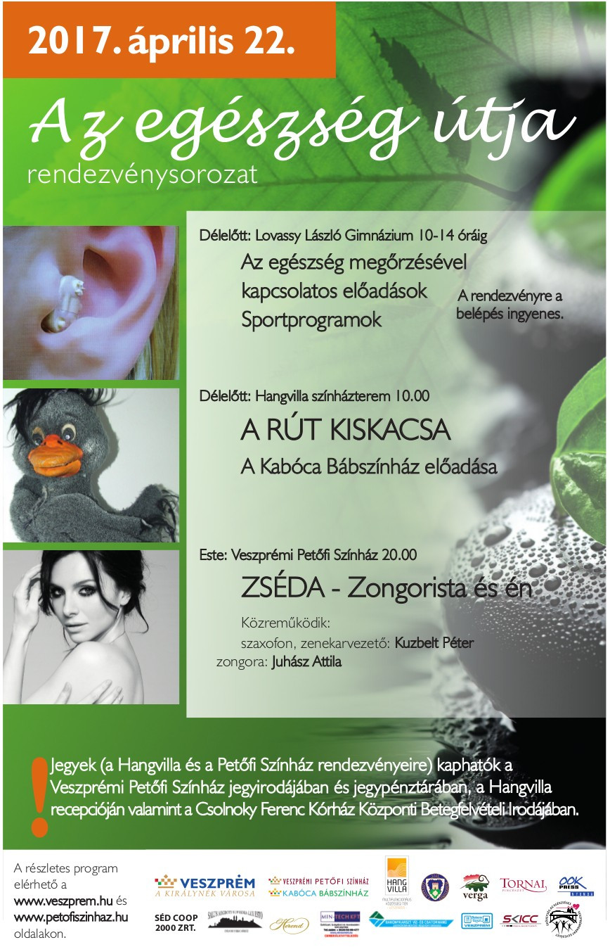 Újdonságként a Kabóca Bábszínház is bekapcsolódik, akik A rút kiskacsa című bábelőadásukat hozzák el délelőtt, délután pedig Zacher Gábor toxikológus tart előadást a 2017-es droghelyzetről, amire a diákok 500 forintos kedvezményes belépőt válthatnak. Dr. Zacher Gábor toxikológus előadása technikai okok miatt elmarad! Majd este 8 órától Zséda jótékonysági koncertjét hallgathatják meg az érdeklődők.