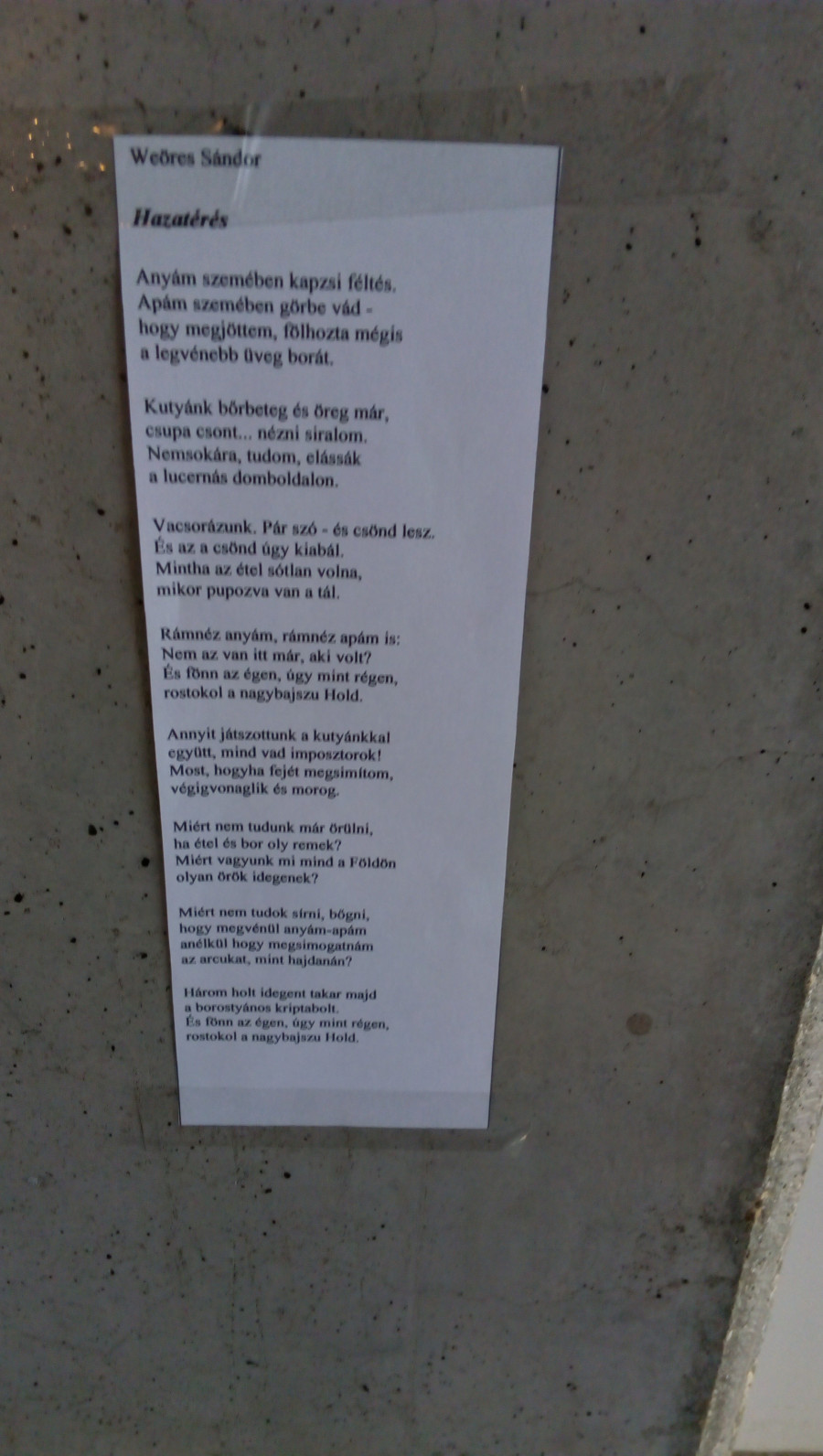 Persze ezt is kellő visszafogottsággal tette, hogy aki nyitott és érdeklődő, az megállhasson és egy percre elmerülhessen a költészetben, aki pedig nem akar tudomást venni róla, az úgy mehessen el mellette, hogy észre se vegye.