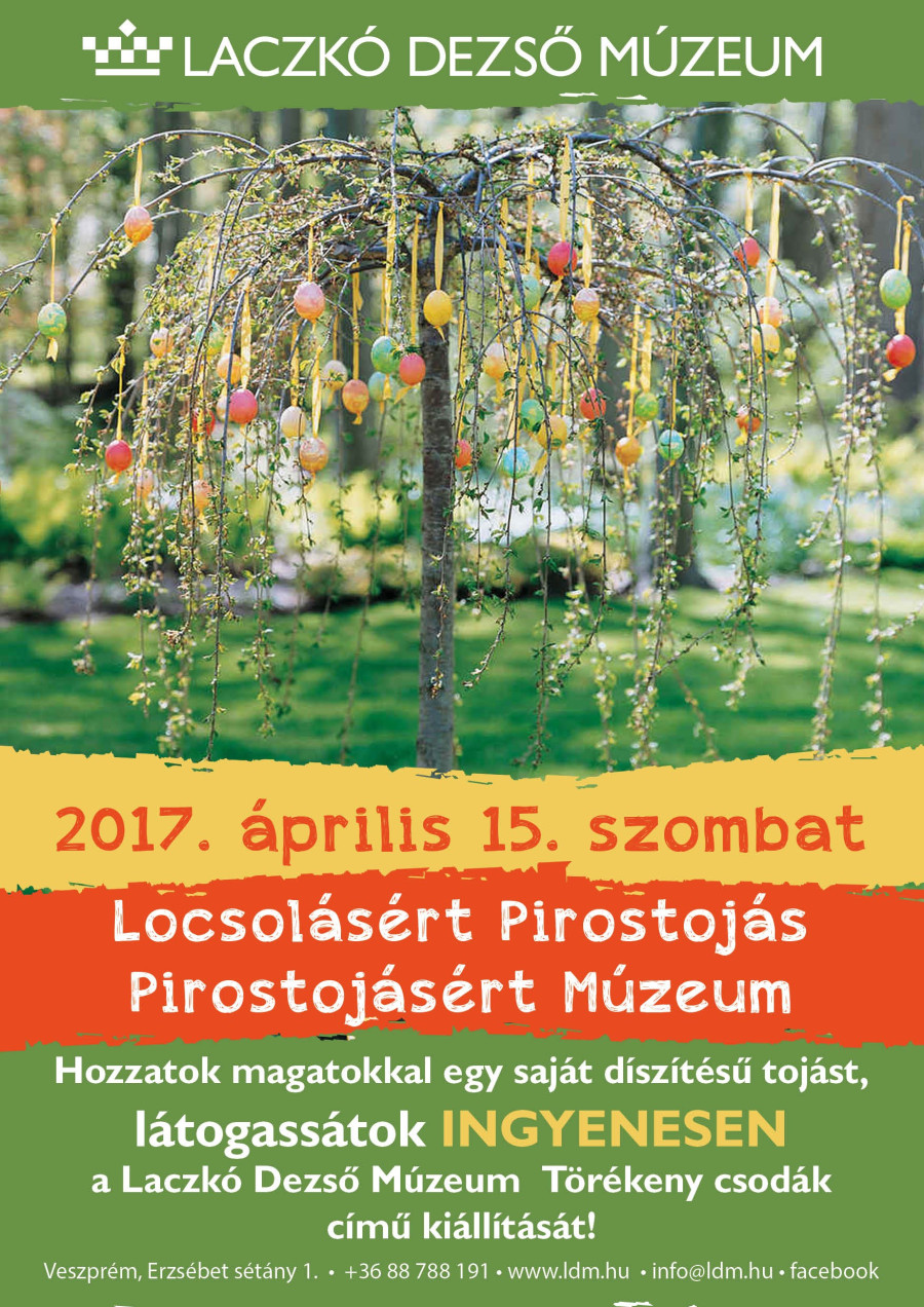 A Laczkó Dezső Múzeum kiállítóhelyei egységesen zárva tartanak húsvétkor, ide értve a munkaszüneti nappá nyilvánított nagypénteket is. 2017. április 15-én, szombaton azonban nyitva tart, ennek keretében a következő kedvezményekkel várja látogatóit: