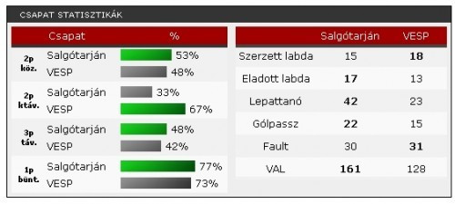 Salgótarján: Vavra 36, Wehner 23, Sebõk 10, Gorski 15, Hartvich 10, Kolarics 2, Kiss 4, Szabó 5, Sári, Zsivera, Balikó, Volzovár