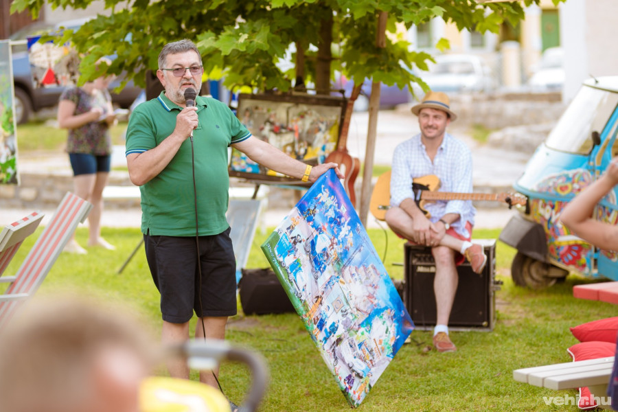 Aki ismeri, tudja, egyébként is szívesen tolja más művészeti ágak szereplőinek szekerét. Az elsők között állt a Zongorát Veszprémnek akció mellé – festményét árverésre ajánlotta fel és ő írta a Zongoradal szövegét. De a Süle Zsolt-Trócsányi Gergely alkotta ÉSTE formáció létrejöttében is nagy szerepet játszott, amikor egymás felé terelgette a két zenészt – persze ők sem hiányoztak a jó hangulatú művészeti tárlatról, együtt emlékeztek vissza a kezdetekre.