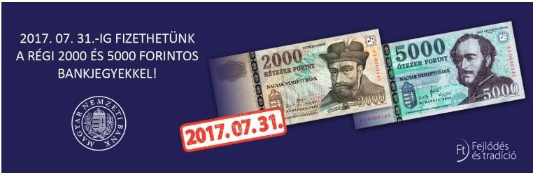 Július utolsó napjáig, azaz hétfőig használható a 2000 és 5000 forintos címlet – tájékoztatott a Magyar Nemzeti Bank (MNB). Közölték, bankjegyek cseréjét nem csupán az elhasználódás indokolja, hanem a technikai fejlődés is, hiszen az papírpénzeket kezelő automaták miatt technikai korszerűsítésre is szükség van.